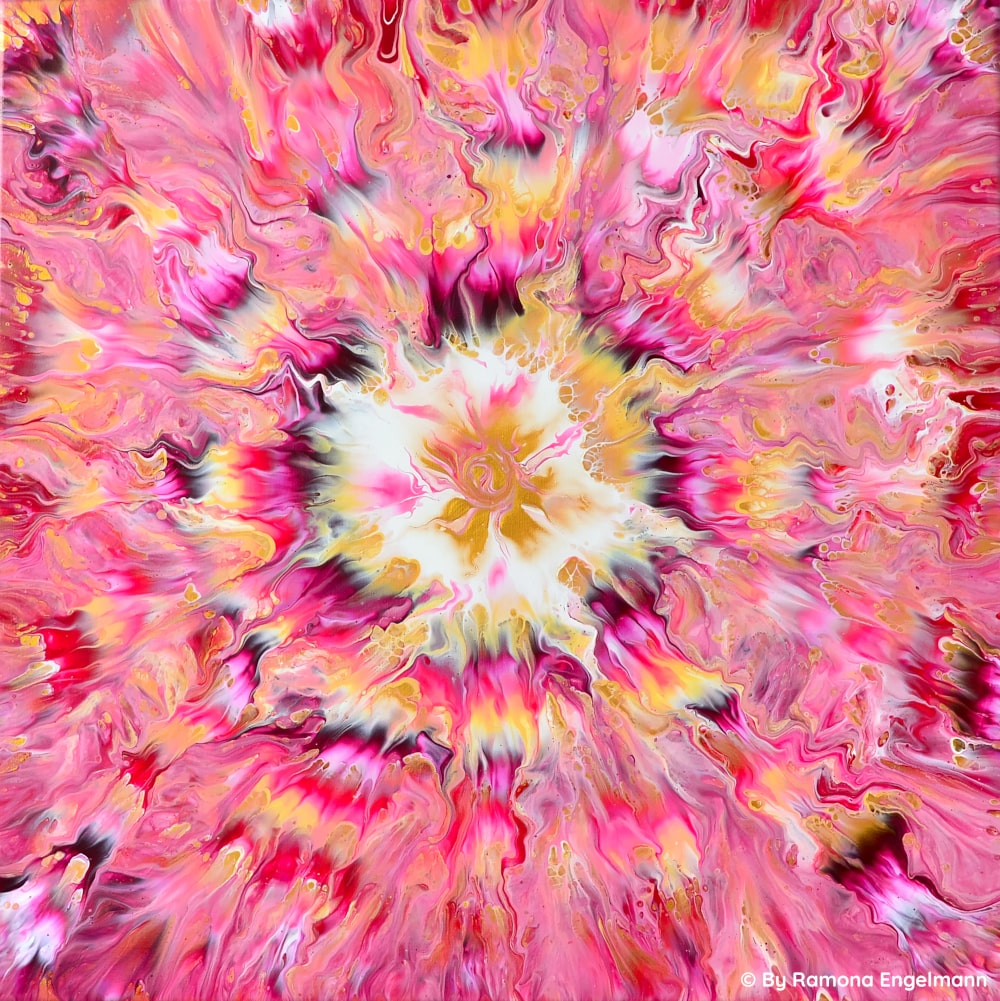 Spüre die Liebe, die Dein Herz umgibt. Wie ein leuchtendes Energierad aktiviert dieses Werk Deine Lebensfreude.